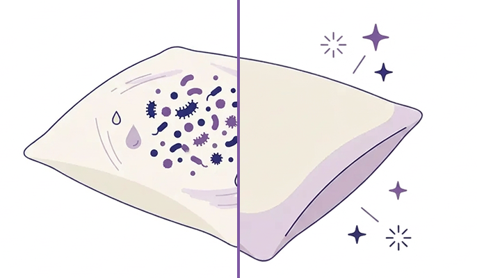 It helps keep your pillow cleaner by neutralizing bacteria and reducing buildup - without irritating your skin.